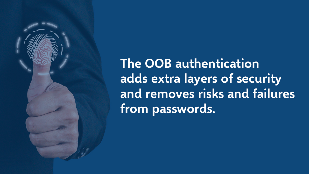 OOB enables consumers to strongly authenticate and confirm their purchases through their mobile devices with just one click. As the authentication happens fully out-of-band and with multiple factors (possession + biometry), it significantly boosts security while eliminating the need to remember static passwords or enter one-time passwords and security questions/answers.