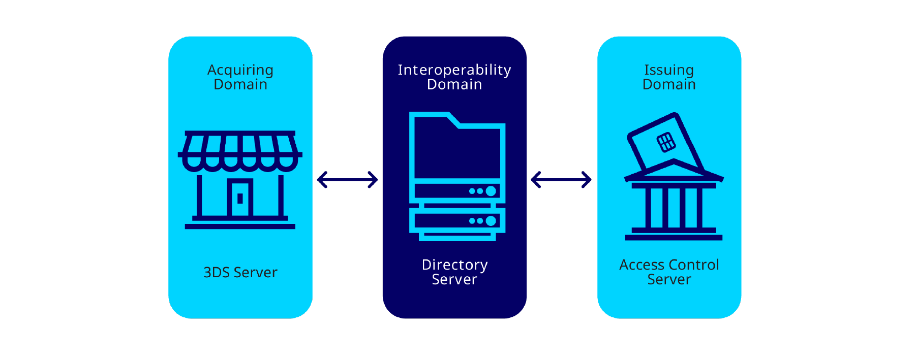 The Directory Server is the element within the interoperability domain that enables communication between the 3DS Server and the ACS. It validates and routes 3DS messages to authenticate the cardholder during the transaction process. Both the ACS and the 3DS Server need to be enrolled by the Directory Server.